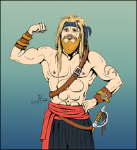 Als ihm Kenji vorgestellt wurde, wollte er wissen, was denn „so ein Kwestor“ sein sollte und wer denn dieser „Mein Brühje“ wäre. Als er erfuhr, dass es sich um den Gott der Gerechtigkeit und Wahrheit handelte, nickte er verstehend und meinte, dass dies der Gott sein müsste, der den „Festländern ihren Stock in den Arsch schiebt!“, also der „Gott der Duckmäuser und Schleimscheißer“. Dann kugelte er sich vor Lachen und beteuerte, dass er doch nur scherze. Er empfahl Kenji noch, in Zukunft besser dem mächtigen „Doganon“ zu huldigen, da sein „Brühje-Gott“ draußen auf der „Bartha-Bucht nichts zu melden hätte“.