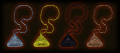 Die Amulette der Gottheiten Soiriz (Eisen), Lhughor (Schwefel), Voyx (Onyx) und Berezkhor (Bronze) in der Pyramide der Höllengötter (Nr.17), Übersetzung der Inschriften (v.l.): „Härte, Flamme, Sicht, Stillstand“